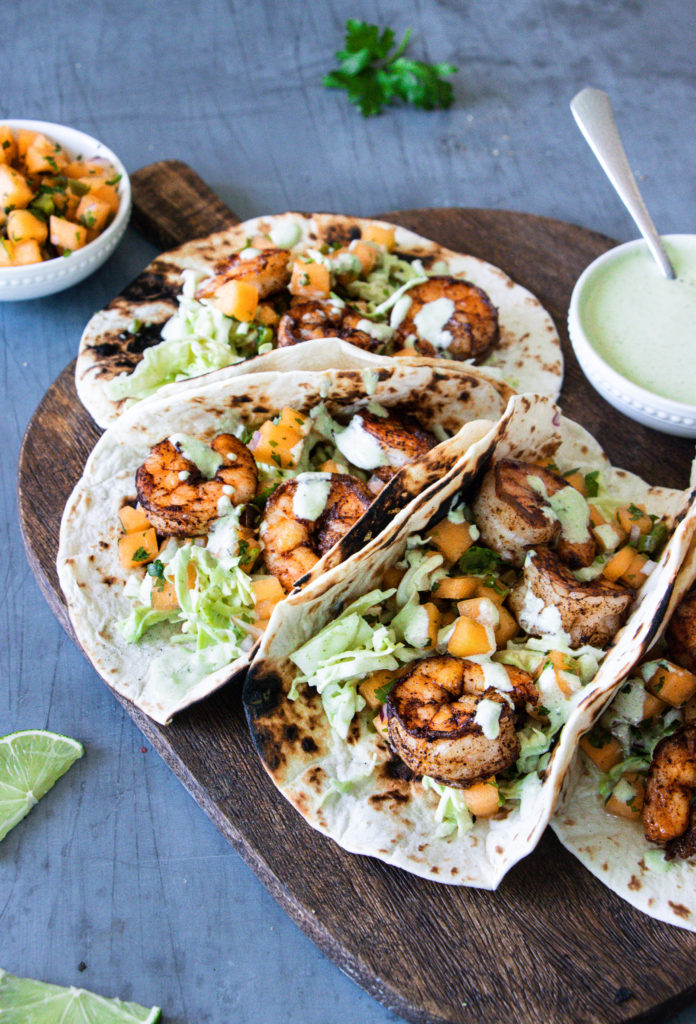 Shrimp Tacos with Cantaloupe Salsa